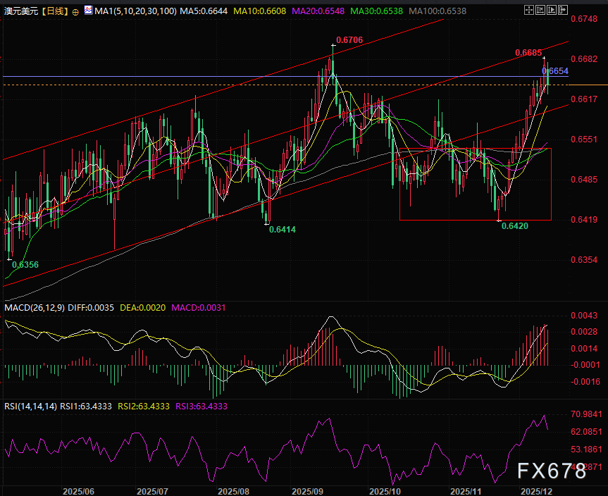 后续需重点关注0.6650关口的支撑力度,以及RBA政策指引、美联储降息节奏等核心变量的后续动向。
